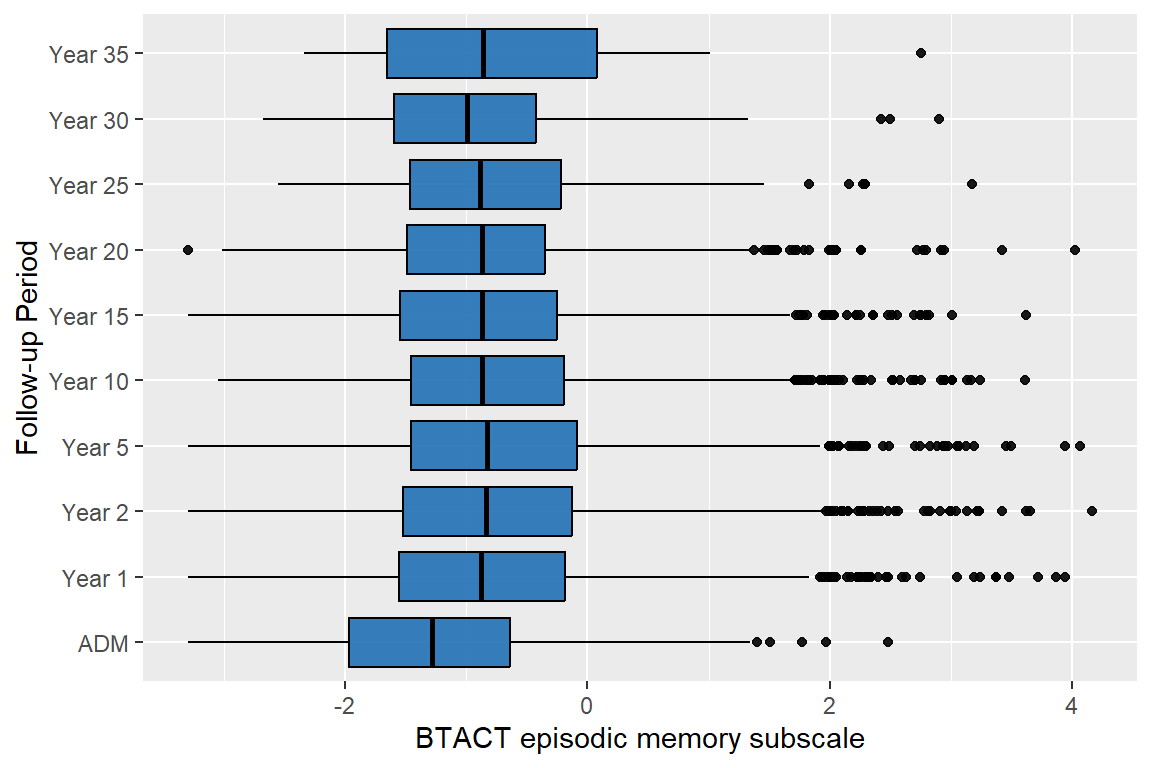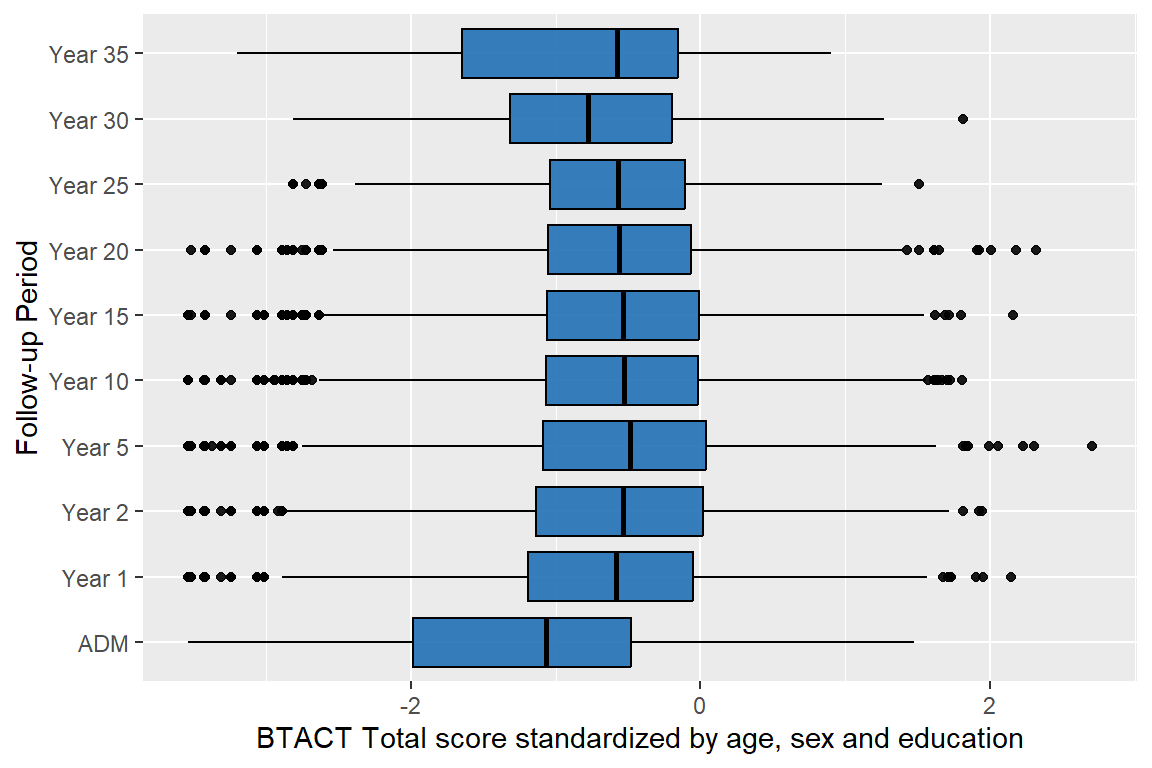 If BTACT window closes prior to patient consenting to the TBIMS, clinical judgement should be used to code whether or not BTACT could have been completed at that time (e.g., consult with treating neuropsychologist or other rehab team members). If determined patient would not have been able to complete the BTACT due to cognitive impairment, code as “Not Attempted due to cognitive impairment.” Do not attempt to abstract information from the medical record to make this determination.